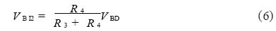 設二極管正向壓降為VD , 分壓電阻R1、R 2、R 3、R 4 對R0的影響可以用等效電阻R= (R 1 + R 2 ) ∥ (R 3 +R 4) 來表示, 則在正常工作時, 滿足