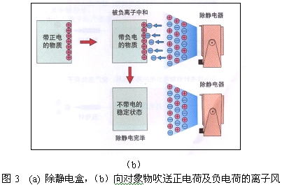 除靜電器是一種通過(guò)向?qū)ο笪锎邓驼姾杉柏?fù)電荷的離子風(fēng)來(lái)中和對(duì)象物帶電狀態(tài)的裝置,如圖3(b)所示。