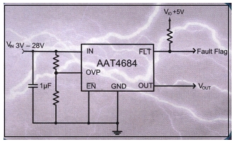 AAT4684指標(biāo):Vin為0.3V~28V,RDS(ON)為100mΩ,IQ為30μA,TRESPOV為1μs。