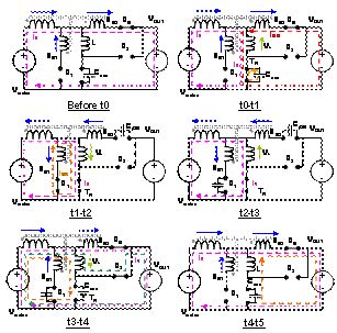 在t0前,BC²電路的特性與傳統升壓轉換器的特性相同。升壓二極管DB 導通,通過體電容器發射主線圈能量。