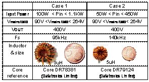 表2:用于不同類型功率因數校正器的L線圈的電感和尺寸[page]