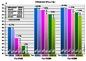 在圖11的示例中,一個導通電阻RDS(on)小于0.46Ω的、輸出功率450 W的功率MOSFET與一個碳化硅二極管和兩個并聯功率MOSFET的結構的能效相同。