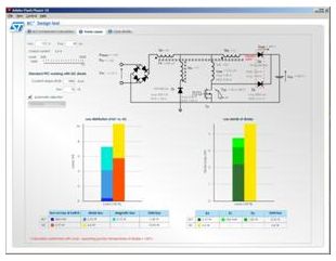 該軟件設計工具可以提供微型線圈和主功率因數校正器的輔助線圈的參數、二極管選型和功率MOSFET的RDS(on)。還可算出每個組件的功率損耗,并與使用一個碳化硅二極管的功率因數校正器對比。