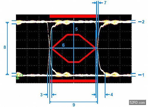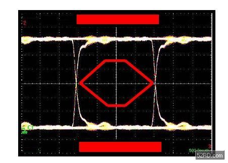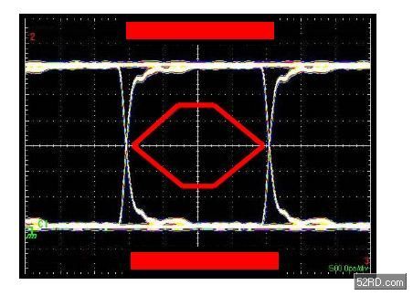 通過在示波器的垂直軸對數(shù)字信號進行反復采樣、同時采用相應數(shù)據(jù)率對水平時間掃描進行觸發(fā)來生成眼圖。所獲得的圖形看上去象眼睛,如圖1所示。“眼睛”越大,數(shù)據(jù)完整性越高。通常采用模板(mask)來對可接受的信號質量進行定義。這模板由“眼睛”中間的六角形和“眼睛”上、下的矩陣組成。如果測得的信號跡線穿越模板的邊線,那么信號質量就不可接受。USB2.0信號模板規(guī)范由USB應用者論壇(USBIF,www.usb.org)提供,可參見USB2.0版規(guī)范第7.1.2.2章節(jié)。圖1中顯示了帶有詳細臨界點的眼圖。