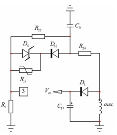 在眾多設(shè)計(jì)中,必須保護(hù)適配器免受熱失控(如適配器殼體內(nèi)溫度超過特定值)影響。我們可以通過跟齊納二極管(D10)串聯(lián)一個(gè)負(fù)溫度系數(shù)(NTC)電阻(R14)來應(yīng)用簡單的 OTP(如圖 3 所示)。當(dāng)溫度升高時(shí),NTC電阻開始下降,并升高引腳 3 的電壓。當(dāng)引腳 3 的電壓電平達(dá)到 3 V 時(shí),器件就簡單地閂鎖,并要求復(fù)位,然后重啟。