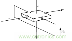 式(1)中,若保持控制電流IC不變,在一定條件下,可通過測量霍爾電壓推算出磁感應強度的大小,由此建立了磁場與電壓信號的聯系。根據這一關系式,人們研制出了用于測量磁場的半導體器件,即霍爾器件。