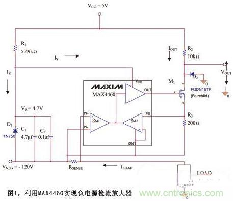 本文介紹了用精密儀表放大器MAX4460實現負電源電流檢測的方案。可以根據上述設計步驟重新設計電路,用于監(jiān)測不同的負壓電源。