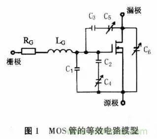 MOS管的等效電路模型及寄生參數如圖1所示。圖1中各部分的物理意義為: