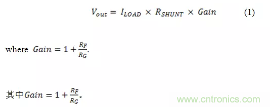 計算最大分流電阻。當來自負載(ILOAD)的電流流過分流電阻器(RSHUNT)時,分流電阻器上會形成一個電壓電位(VSHUNT)。VSHUNT被視為系統負載的“接地端”。因此,建議將VSHUN的最大負載電流保持在100mV以下,以避免在與其它具有真正0V接地的系統連接時出現問題。公式2用于計算RSHUNT值: