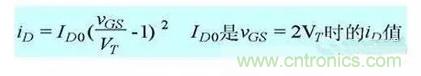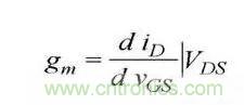 在轉(zhuǎn)移特性曲線上,gm 是曲線在某點上的斜率,也可由iD的表達式求導得出,單位為 S 或 mS。