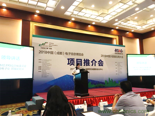 2018年5月24日下午, 2018中國(成都)電子信息博覽會暨2018中國大數(shù)據(jù)應(yīng)用大會在成都世紀(jì)城國際會議中心召開項(xiàng)目推介會?;顒佑芍须姇古c信息傳播有限公司總經(jīng)理宋偉主持,四川省經(jīng)濟(jì)和信息化委員會電子處蘇平處長,成都市經(jīng)濟(jì)和信息化委員會通用電子處副處長鄧敏出席推介會并致辭,中國電子器材總公司總經(jīng)理陳雯海向來賓介紹了2018中國(成都)電子信息博會項(xiàng)目整體情況和2018中國大數(shù)據(jù)應(yīng)用大會項(xiàng)目的相關(guān)進(jìn)展情況,四川省大數(shù)據(jù)產(chǎn)業(yè)聯(lián)合會常務(wù)副秘書長朱小軍,代表合作伙伴在推介會上進(jìn)行了發(fā)言,四川省其他30家相關(guān)學(xué)協(xié)會等也參加了本次活動。另外,現(xiàn)場還有超過50家媒體及100家成都及四川地區(qū)電子信息產(chǎn)業(yè)相關(guān)企業(yè)及組織出席項(xiàng)目推介會。
