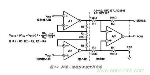 最后,由于結構上的對稱性,輸入放大器的共模誤差,如果它們跟蹤,將被輸出級的減法器消除。這包括諸如共模抑制隨頻率變換的誤差。上述這些特性便是這種三運放結構得到廣泛應用的解釋。