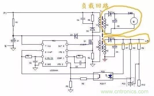 4)負載回路:N3,N4二次繞組及后續(xù)電路,均為負載回路,負載回路的異常,會牽涉到保護回路和穩(wěn)壓回路,使兩個回路做出相應的保護和調(diào)整動作。