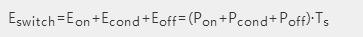 MOS管主要損耗:開關損耗,導通損耗,截止損耗,還有能量損耗,開關損耗往往大于后者,小部分能量體現在“導通狀態”,而“關閉狀態”的損耗很小幾乎為0,可以忽略不計。具體使用下面公式計算: