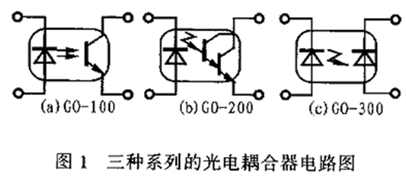 光電耦合器的主要結構是把發光器件和光接收器件組裝在一個密閉的管殼內,然后利用發光器件的管腳作輸入端,而把光接收器的管腳作為輸出端。當在輸入端加電信號時,發光器件發光。這樣,光接收器件由于光敏效應而在光照后產生光電流并由輸出端輸出。從而實現了以“光”為媒介的電信號傳輸,而器件的輸入和輸出兩端在電氣上是絕緣的。這樣就構成了一種中間通過光傳輸信號的新型半導體電子器件。光電耦合器的封裝形式一般有管形、雙列直插式和光導纖維連接三種。圖1是三種系列的光電耦合器電路圖。