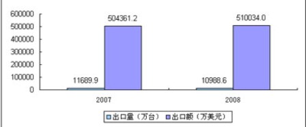 近年以來,全球DVD播放機市場呈現(xiàn)相對飽和、增長放緩。席卷全球的金融風(fēng)暴,高額的核心技術(shù)專利費,人民幣的升值,原材料價格持續(xù)上漲和勞動力價格的上升等因素使國產(chǎn)DVD低成本的出口優(yōu)勢逐步減弱,因此,2008年1-10月DVD播放機出口市場呈現(xiàn)“量降價漲”的趨勢,2008年1-10月出口為10988.59萬臺,同比下降6%,出口額為510034萬美元,同比增長1.1%。出口仍以O(shè)EM加工為主。