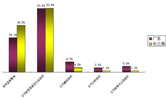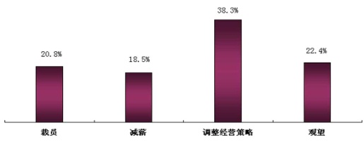 此項調(diào)查結(jié)果出乎我們的意料,選擇裁員的企業(yè)已經(jīng)占到了20.8%,但是多數(shù)企業(yè)還是選擇了調(diào)整經(jīng)營策略。我們特別希望有遠(yuǎn)見的企業(yè)不要把裁員作為應(yīng)對危機(jī)的主要措施,這也不符合我們“和諧社會”的主旋律。只要能正確的面對,認(rèn)真分析企業(yè)的優(yōu)勢,研究市場的動向,合理配置企業(yè)資源,充分發(fā)揮員工的潛力,調(diào)動員工的積極性,企業(yè)一定會有新的轉(zhuǎn)機(jī)。企業(yè)如能和員工共克時艱,就會加深員工對企業(yè)的感情,這種情感會轉(zhuǎn)化為企業(yè)的一種優(yōu)勢資源。(見圖表四)