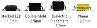 輕薄、小型封裝:總封裝高度現(xiàn)在單純?nèi)Q于IC、LED、超薄聚酰亞胺和LED焊接線高度的厚度組合。