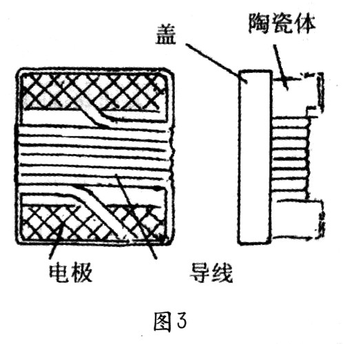[page]還有一種片式繞線電感是采用H型陶瓷芯,經過繞線、焊接、涂復、環氧樹脂灌封等工藝制成,見圖3,由于電極已預制在陶瓷芯體上,制造工藝更加簡單,而且可以進一步小型化。這類電感的電感量較小,但自諧振頻率高(通常為5~6GHz,最高達12.5GHz),更適合高頻使用。