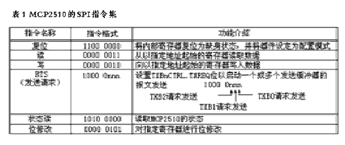 MCP2510在SCK下降沿通過SO引腳發送表1列出了所有操作的指令字節。