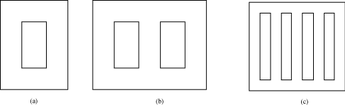 鐵基非晶合金鐵心結(jié)構(gòu)也分為疊片式和卷繞式兩種。疊片式鐵心是比較早期的結(jié)構(gòu),是把鐵基非晶合金帶材剪切成一定的鐵心片后,再疊裝成一定結(jié)構(gòu)形狀的鐵心。鐵基非晶合金帶材厚度一般為20μm~40μm,疊裝起來既費(fèi)時(shí)又不容易疊好。為了縮短工時(shí)和增加鐵心強(qiáng)度,把幾片和十幾片薄鐵心片粘接在一起,成為0.1mm~0.25mm厚的鐵心片,但是損耗也有所增加。鐵基非晶合金磁性不存在取向問題,但是剪切加工困難,一般鐵心片形狀都為單I形(圖6),疊裝后的鐵心截面都為矩形。鐵心柱數(shù)也分為單相電磁元件用的兩柱式和三相電磁元件用的三柱式兩種。由于需要大量的工時(shí),疊裝式鐵基非晶合金鐵心結(jié)構(gòu)現(xiàn)在已很少使用。但是在150μm鐵基非晶合金帶材工藝成熟之后,仍然有可能采用疊裝式鐵心結(jié)構(gòu)。