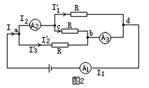 不計電流表內電阻時,三個電阻并聯.設總電流為I,則通過每個電阻的電流