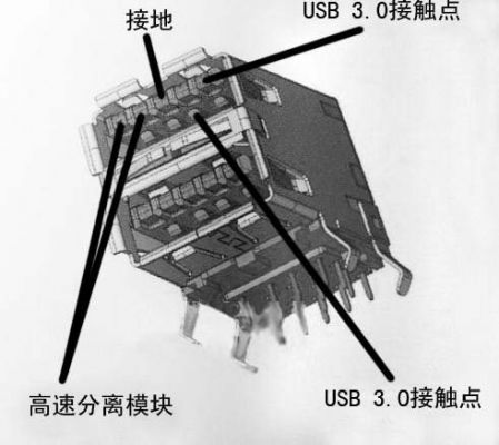 與USB 1.1升級(jí)到USB 2.0一樣,USB 3.0仍然采用USB 2.0相同的架構(gòu),向下兼容先前的即插即用USB版本,不管是USB 2.0還是USB 1.1設(shè)備,都能夠與USB 3.0接口的設(shè)備相兼容。從接口結(jié)構(gòu)來(lái)看,USB 2.0線纜使用了4條線的封裝設(shè)計(jì),所以USB 2.0接口使用了4個(gè)金屬觸點(diǎn),它們分別為+5V取電、數(shù)據(jù)-、數(shù)據(jù)+、GND接地。然而USB 3.0并非廣播總線,它在包頭中采用發(fā)送列表區(qū)段來(lái)進(jìn)行發(fā)包,上行接口提供分散式的USB 3.0互聯(lián),下行接口支持USB 2.0設(shè)備,從而用簡(jiǎn)單的方法實(shí)現(xiàn)高速傳輸和兼容性并舉的雙重好處。