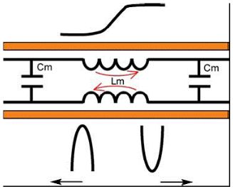 互阻抗沿著兩條走線呈均勻分布。串擾在數字門電路向串擾線打出上升沿時產生,并沿著走線進行傳播: