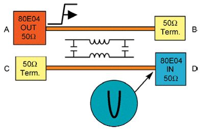 泰克8000B系列儀器中安裝有80E04電子采樣模塊,是成功測量串擾的理想儀器組合。80E04是一款雙通道采樣模塊,包含有一個TDR階躍電壓產生器,能產生上升時間為17ps的250mv窄脈沖,并以50歐姆的源阻抗輸出。測試人員只需連接待測PCB即可。