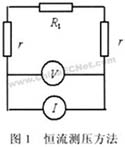 本文主要介紹恒流測壓法。當被測電阻阻值遠遠大于測試引線電阻和測試探針與測試點的接觸電阻時,采用圖1所示的兩線測試的基本方法是可行的,并且也可以獲得相當高的測試精度。