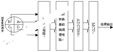 信號通過放大和調(diào)理后由由A/D轉(zhuǎn)換器(本系統(tǒng)中采用ADS7864)采樣轉(zhuǎn)換成數(shù)字量送入單片機,由單片機處理后得到目標(biāo)的方位,并根據(jù)實際系統(tǒng)的需要輸出方位控制指令。