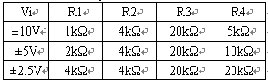 ADS7864模擬輸入通道的+IN和-IN的最大電壓輸入范圍為-0.3V~+5.3V(ADS7864 +5V供電)。圖3的電路中使用了2個運放,A1用作跟隨器,用來緩沖ADS7864輸出的2.5V基準電壓源;A2和四個電阻構(gòu)成了信號調(diào)理網(wǎng)絡(luò),適當(dāng)配置R1~R4電阻可以實現(xiàn)對輸入信號Vi的縮放和平移以適合ADS7864模擬通道的輸入要求。+IN端的輸入電壓表示如下: