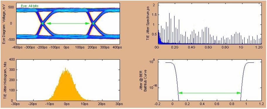 圖10 1228.8Mbps發送側眼圖(經5inches FR4走線,調整了最優的去加重補償)