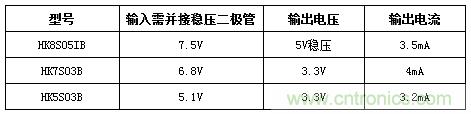 一般情況下,HK模塊輸入端并接的二極管穩(wěn)壓值越高,HK能夠提供的輸出功率越大。為最大限度地延長(zhǎng)兩線制信號(hào)的傳輸距離,在滿足MCU所需功耗的前提下,盡量選擇穩(wěn)壓值低一些的穩(wěn)壓二極管,作為HK模塊的輸入電壓。對(duì)于列表中沒有的輸入電壓,可以向廣州金升陽科技有限公司訂制。