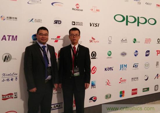 廣東歐珀資源開發部部長劉波先生 (左) 與 Fairchild 大中華地區副總裁賴長青先生 (右) 在頒獎禮上合照