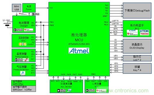 圖示2-大聯(lián)大世平基于Atmel ATSAM4L的多功能智能手表功能框圖