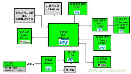 圖示6-大聯(lián)大世平基于ST STM32L151 單導(dǎo)聯(lián)心率監(jiān)護手表功能框圖