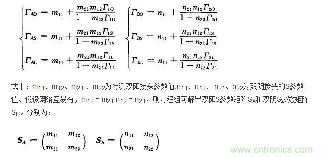 用2O dB衰減器作為負載替代方法1中50 Ω匹配負載,用矢量網(wǎng)絡(luò)分析儀測出衰減器連接雙陰、雙陽的反射系數(shù)ΓAL、ΓBL,測得2O dB衰減器的反射系數(shù)分別為Γ 1L ,Γ2L。其他步驟類似于方法1。計算出S并和方法1中的對比。