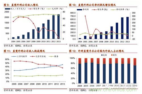 腹腔手術輔助醫(yī)用機器人的領軍者。直覺外科公司(達芬奇公司)(納斯達克股票代碼:ISRG),成立于1995年11月9日,是全球領先的微創(chuàng)機器人輔助手術機器人公司,是腹腔手術輔助醫(yī)用機器人的領軍者,主要負責設計、制造和銷售達芬奇外科系統(tǒng)及相關儀器配件。公司總部設于美國加州,在美國、西歐大部分國家(西班牙,葡萄牙,意大利和希臘)、韓國、捷克共和國、斯洛伐克、匈牙利等國家都有直接銷售結構。截止13年末,直覺外科公司共雇員工2792人,其中325人從事研究開發(fā),1018人從事制造業(yè)和服務,1449人從事營銷、銷售和管理活動。