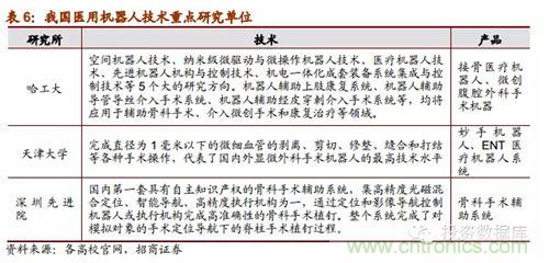 隨著醫(yī)用機器人技術的不斷突破和發(fā)展,從2005年開始我國有一批重點高校科研醫(yī)院單位及研究所在研究醫(yī)用機器人系統(tǒng)并取得了一些小成就,比如哈工大的微創(chuàng)腹腔外科手術機器已經(jīng)成功被專家驗收,天津大學的妙手機器人在今年3月份開始臨床使用;同時,隨著醫(yī)用機器人商業(yè)化市場化的可能性愈發(fā)明晰,已經(jīng)有部分企業(yè)正在生產(chǎn)或者打算進軍醫(yī)用機器人細分行業(yè),其中就包括機器人領先企業(yè)的博實股份和新松機器人。