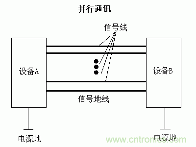 并行通訊中,基本原理與串行通訊沒有區別。只不過使用了成倍的信號線路,從而一次可以傳送更多bit的信號。