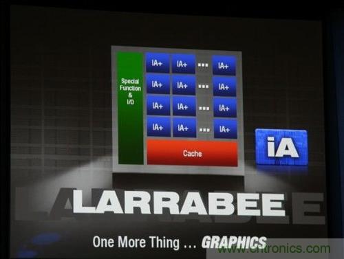 在2007年的IDF上,Intel正式揭開獨(dú)立顯卡——代號“Larrabee”的神秘面紗,Larrabee隸屬于其萬億次運(yùn)算項(xiàng)目(Tera-scale),也將是Intel的第一款實(shí)用級萬億次運(yùn)算處理器,其處理能力“大大超過”一萬億次浮點(diǎn)每秒;根據(jù)Intel首席架構(gòu)師EdDavis的演示文稿,Larrabee基于可編程架構(gòu),主要面向高端通用目的計(jì)算平臺,至少有16個核心,主頻1.7-2.5GHz,功耗則在150W以上,支持JPEG紋理、物理加速、反鋸齒、增強(qiáng)AI、光線追蹤等特性。