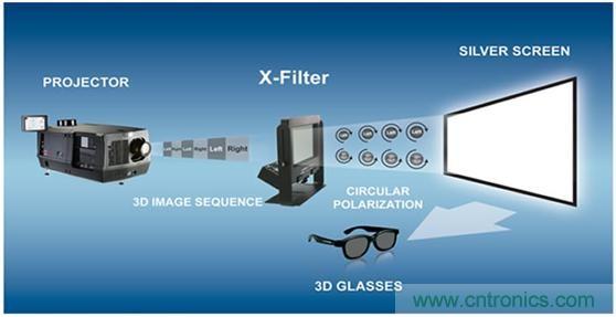 偏光式3D的基本原理其實與紅藍(lán)3D差不多,只不過在技術(shù)上相對成熟,采用兩個不同偏振方向的偏振片作為眼鏡,這樣垂直偏振的左眼將接受不到水平偏振的光,同樣水平偏振的右眼也接受不到垂直偏振的光。這樣我們在投射圖像的時候只需要將不同角度的圖像信息以不同偏振態(tài)的光發(fā)射出來,我們的兩個眼睛就會分別看到不同角度的信息,形成立體視覺。