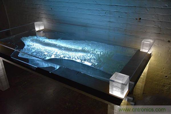 【導(dǎo)讀】在紐約長大的藝術(shù)家Troy Huang使用3D打印和激光切割技術(shù)制作了一張讓人驚艷的桌子,這張桌子上布滿了曼哈頓的每一棟建筑模型。這就是曼哈頓城區(qū)的微縮模型,盡管是微縮的,但是其中的每棟建筑、每條街道都清清楚楚,十分精細(xì),再用LED燈點(diǎn)亮,一座燦爛輝煌的世界之都呈現(xiàn)在我們眼前。