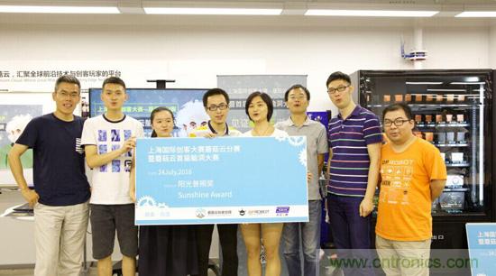 云漢芯城社區(qū)運(yùn)營總監(jiān)顧天任(右二)為參賽隊(duì)伍頒發(fā)陽光普照獎(jiǎng)
