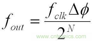 (1)式中,fclk為參考時鐘頻率,ΔΦ為相位增量,N為相位累加器的位數(shù)。只要N足夠大,DDS可以得到很小的頻率間隔。要改變DDS的輸出信號的頻率,只要改變ΔΦ即可。當參考時鐘頻率給定后,輸出信號的頻率取決于頻率的控制字,頻率分辨率取決于累加器的位數(shù),相位分辨率取決于ROM的地址位數(shù),幅度量化取決于ROM的數(shù)據(jù)字長和D/A轉換器的位數(shù)。