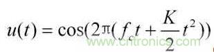 式中fe為載波頻率,K=B/T是調頻斜率,于是,信號的瞬時頻率為。