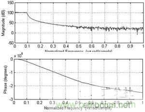 經過頻率累加器輸出的是嚴格線性增長的瞬時頻率。在實際過程中,相位累加器的輸出是經過相位截斷再進行尋址,從而引入了一定的相位誤差,雖然這一誤差會影響到線性調頻信號的線性度,但是調頻斜率為相位的二次導數(shù),相位截斷誤差本身已很小,所以對調頻線性度的影響就更小了。在本文的Matlab實現(xiàn)中暫時不考慮截斷問題,忽略不計。