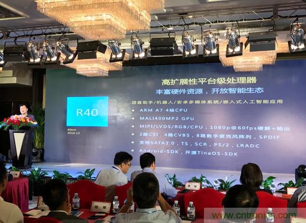 隨后,李智展示了全志最具擴展性的智能硬件開放平臺R40系統,R40有遠場語音交互、多顯示接口和音視頻編解碼等優勢,非常適用于語音助手、機器人、定制化的安卓多媒體系統產品開發。