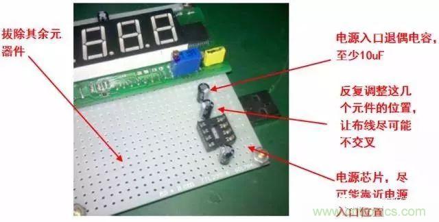 電源貫穿電路始終,合理的電源布局對簡化電路起到十分關鍵的作用。某些洞洞板布置有貫穿整塊板子的銅箔,應將其用作電源線和地線;如果無此類銅箔,你也需要對電源線、地線的布局有個初步的規劃。